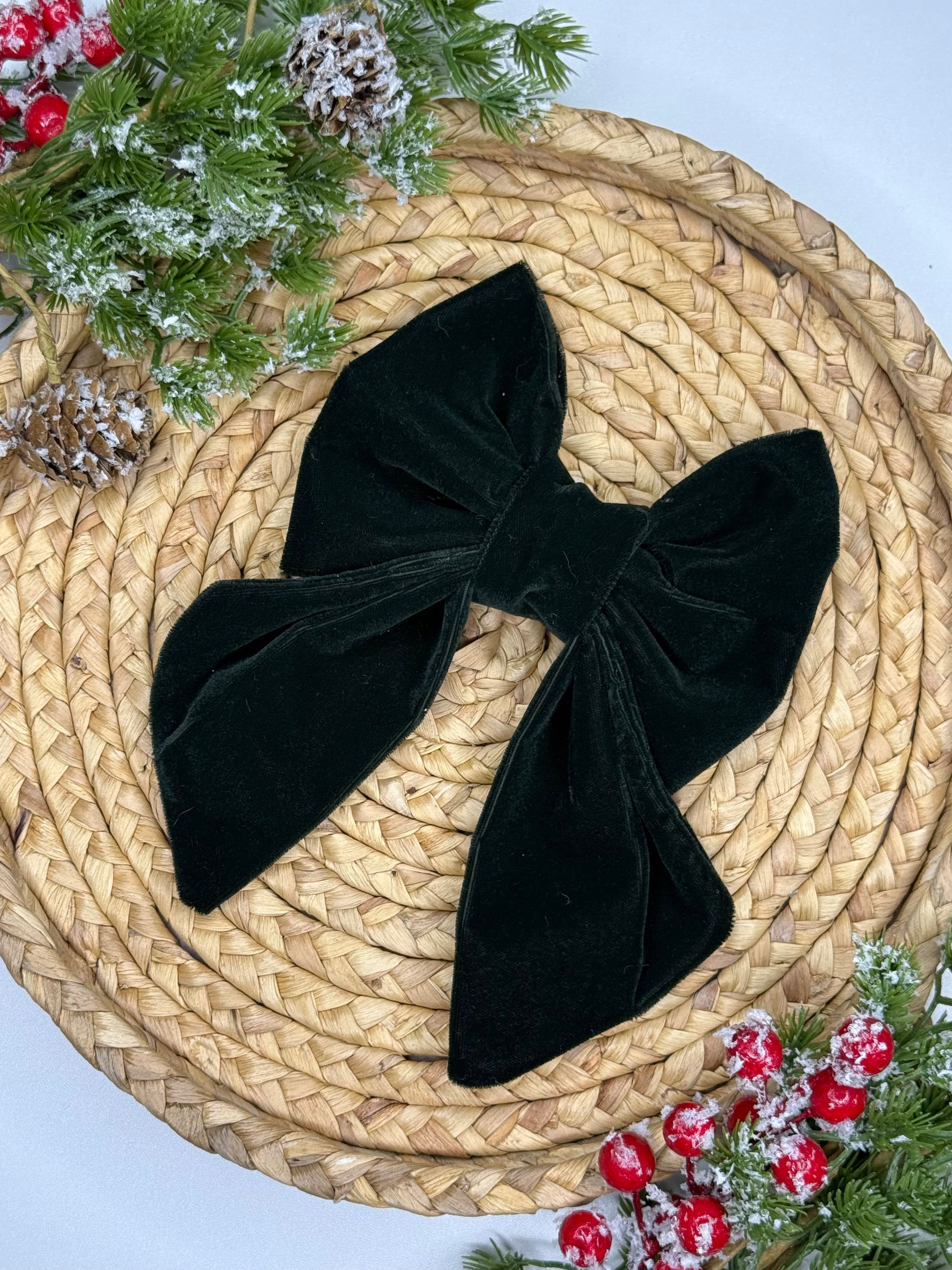 A stunning velvet bow in a deep emerald shade. Elegant, refined, and ideal for creating a chic winter aesthetic.